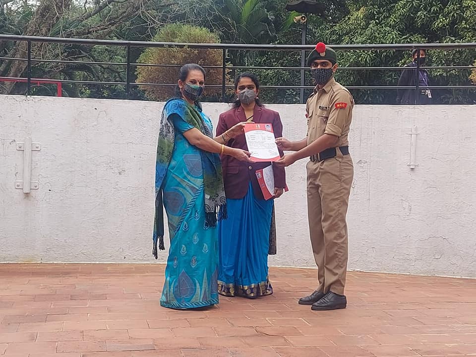 25 NCC cadets received their certificate from Principal, Mrs. Manju Sharma on having passed the ‘A’ Certificate exam. ANO, Dhanya Santosh was present on the occasion.